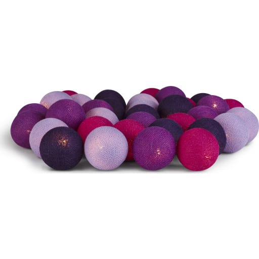 Iris Lights Vivid violet LED lyskædeTankerne ledes nemt hen på farverige sommerblomster i stærke farver som skaber glæde og kulør. Helt bestemt den tanke havde Iris Light da de sammensatte denne lyskæde med farvede kugler i pink nuancer.Hver en bold er la
