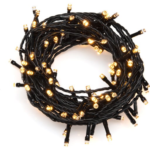 Udendørs batteri lyskæde med ravfarvede LED’er 11,9 meter lang udendørs lyskæde på batteri med 120 LED lys. Lyskæden lyser med ravfarvede lys og er simpelthen bare så hyggeligt som noget kan blive. Det er en pragtfuld lyskæde, der er perfekt til brug