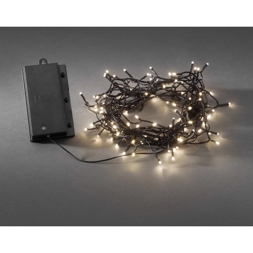 Udendørs batteri lyskæde med varm hvide LED’er 23,9 meter lang udendørs lyskæde på batteri med 240 LED lys. Lyskæden lyser med varm hvide lys og er simpelthen bare så hyggeligt som noget kan blive. Det er en pragtfuld lyskæde, der er perfekt til brug