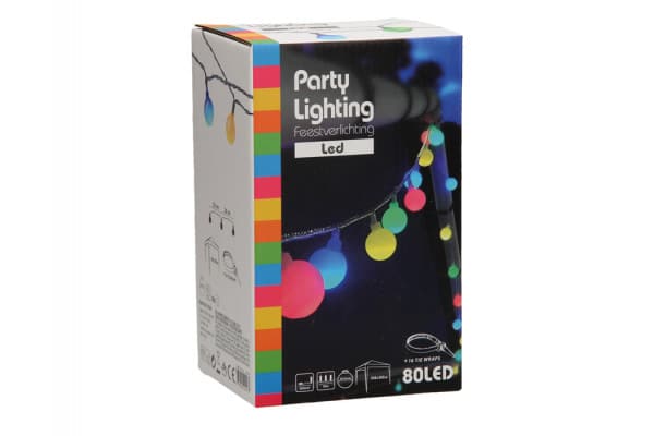 Skal du snart holde fest og leder du efter pynt til dit festtelt? Så vælg denne lyskæde med 80 farvede LED-lys. Du kan bruge lyskæden både uden- og indendørs.Â