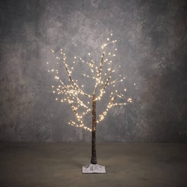 Lystræ på fod med 300 hvide LED-lys og timer. Til udendørs brug.Mål:Diameter: 80 cmHøjde: 120 cmTilsluttes 230 V.Fremstillet i metal, plast mv.Pakket med 1 stk.