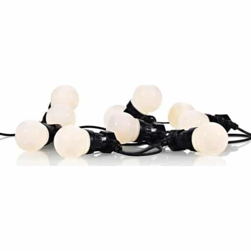 4,5 meter udendørs LED lyskæde med hvide kugler (kan selvfølgelig også bruges indendørs). Du får et godt LED lys som vi ofte ser brugt på terrassen, drivhuset, børneværelset og lign. Foruden de 4,5 meter med 10 hvide LED pærer er der også 3 meter ledning