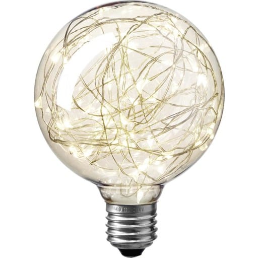 Nielsen Light Clara globepære Få en opfindsom dekorativ pære. Pæren har et klart glas, og inde under dette er hvor pæren skilder sig ud. Glødetrådene er nemlig skiftet ud med en lyskæder, der ligner et tilfældigt mønster. Lyset er varmhvidt hvilket også g