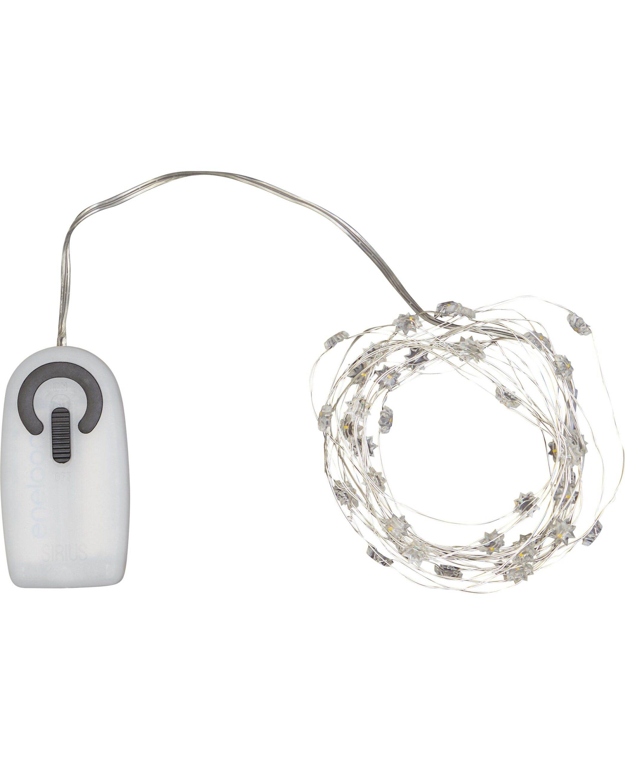 Sirius Lyskæden Silke har 40 meget små fine (0,5 cm) LED lys. På kæden er der påsat 40 små (1cm) klare blomster. Kæden er lavet med en fin sølvtråd der er snoet rundt om den transprarente ledning. Meget dekorativ kæde. Kæden er 3,9 meter lang, og har et v