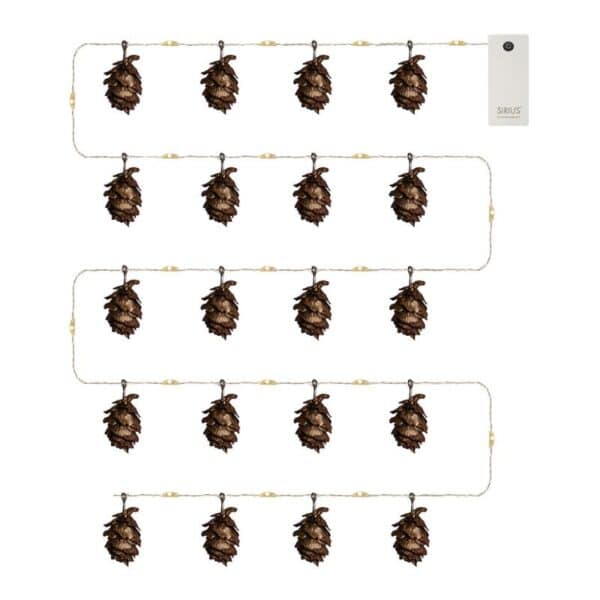 Med Sirius Molly Kogler får du julehyggen helt ind i dit hjem. Koglerne og lyset skaber tilsammen den perfekte stemning og ser super godt ud. Lyskæden er 2 meter lang, har 20 led dioder og kan justeres på 3 lys trin så du kan skabe det ideelle lys til dit