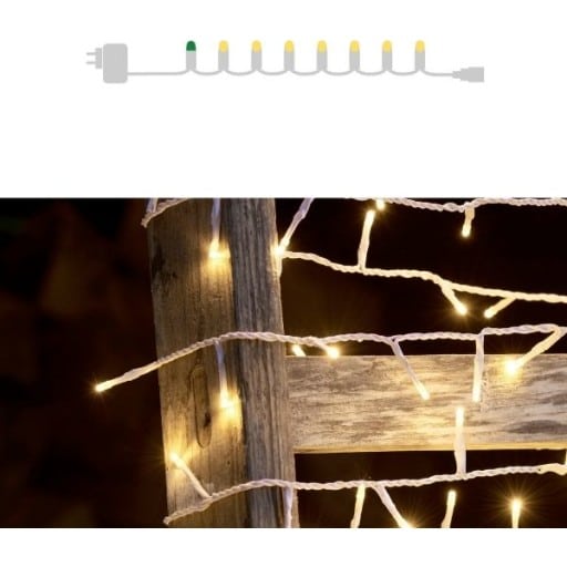 Sirius Top-Line LED lyskæde | 50 varmhvide lys | 5m + 5m. | hvid ledning | STARTSÆTDanske Sirius leverer her et Startsæt med 5 meter lyskæde samt 1,5 meter ledning, hvorpå der er transformer og stik til stikkontakt. Få et perfekt varmhvidt julelys med Top