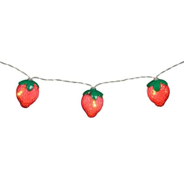 Hyggelig lyskæde med sommerlige, modne jordbær som lygter. Lyskæden er med 10 LED-pærer fordelt på 120 cm. Jordbærerne måler 4 cm i højden.Mål:Længde: 120 cmHøjde på bær: 4 cmBruger 2 x AA-batterier.Til indendørs brug eller under overdækket terrasse mv.Pa