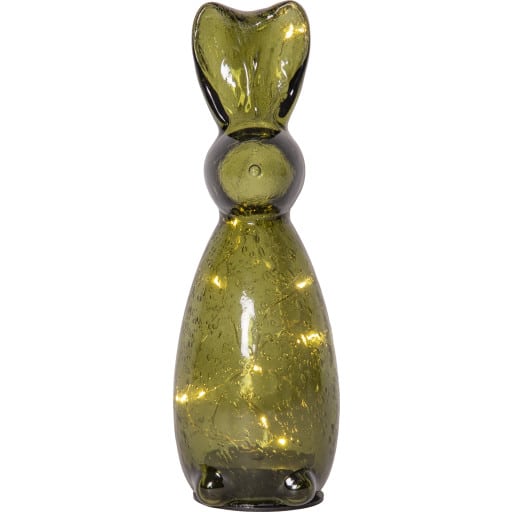 Hare i glas med LED-lys – Bordlampe og påskedekoration i ét Harry fra Star Trading er en dekorativ hare i bruntglas, der kombinerer finurligt formsprog med varmt lys. Det bløde skær fra den indbyggede LED-lyskæde lyser figuren op indefra og giver den ka