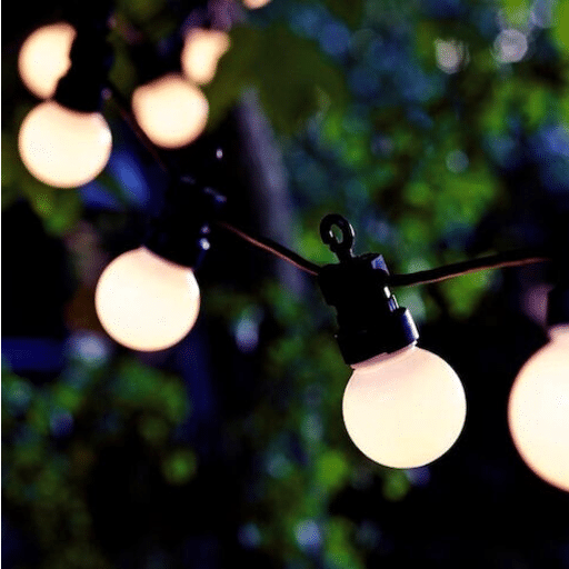 Veli udendørs lyskæde i hvid, 6 meter Med denne LED lyskæde skrues der op for den hyggelige stemning på terrassen, uanset om der er lagt op til en fest, eller du blot vil nyde en sommeraften udenfor. Lyskæden kommer med 10 mat-hvide kugler, der er fordelt